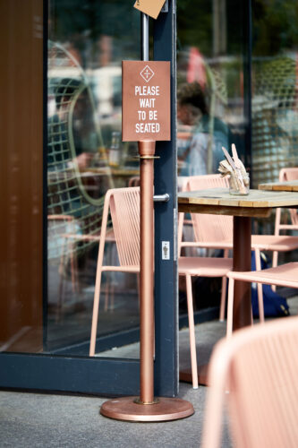 Smithfield Exterior: Corten steel pressed illuminated fascia, Window Manifestations, Pavement Sign Interior: Individual acrylic lettering Grand Canal Dock Exterior: Built-up halo LED illuminated metal lettering on framework, Window Manifestations, Pavement Sign Interior: Individual acrylic lettering, Timber table numbers