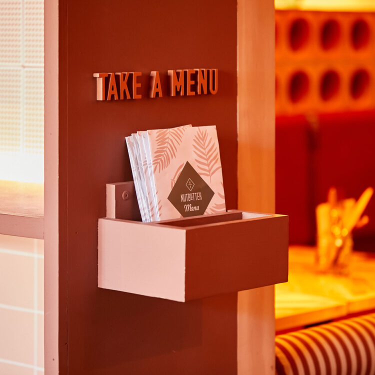All interior and exterior signage was created in line with the Nutbutter brand, with high quality material, finishes, and colour consistency elevating the experience.