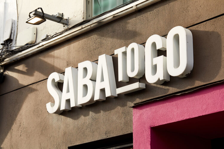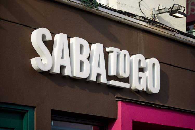 Exterior and interior signage for the SABA To Go Take-Away chain.