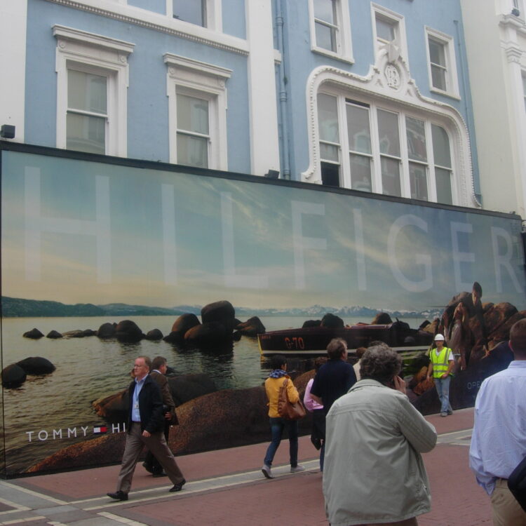 Utilising the high profile advertising space around a development, our hoarding signage can be a very effective marketing tool. We use the latest graphic design and digital printing technologies to produce high quality advertising hoardings and site signage suitable for outdoor and indoor displays for shop openings, product launches, and construction sites.